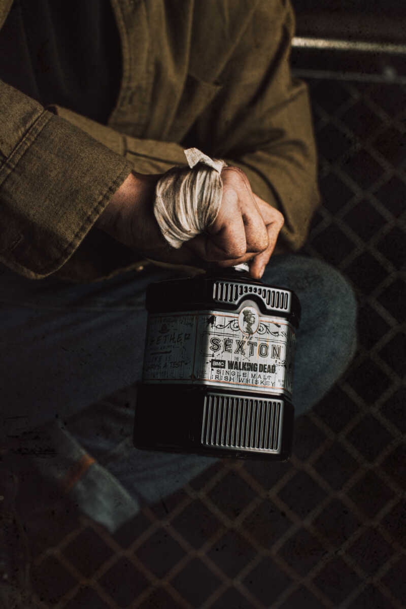 The bottle depicts notions of The Walking Dead across The Sexton’s distinctive, black hexagonal bottle. Featuring a decaying silver label and a walker’s head in the place of the brand’s trademark skeleton logo, the packaging melds the post-apocalyptic show with the bottle’s most distinctive qualities. Quotes from cast members Daryl, Herschel, Rick and Michonne adorn the bottle, describing the harsh realities of existence experienced by characters throughout the series, an ironic reminder of The Sexton’s mantra – celebrate life.